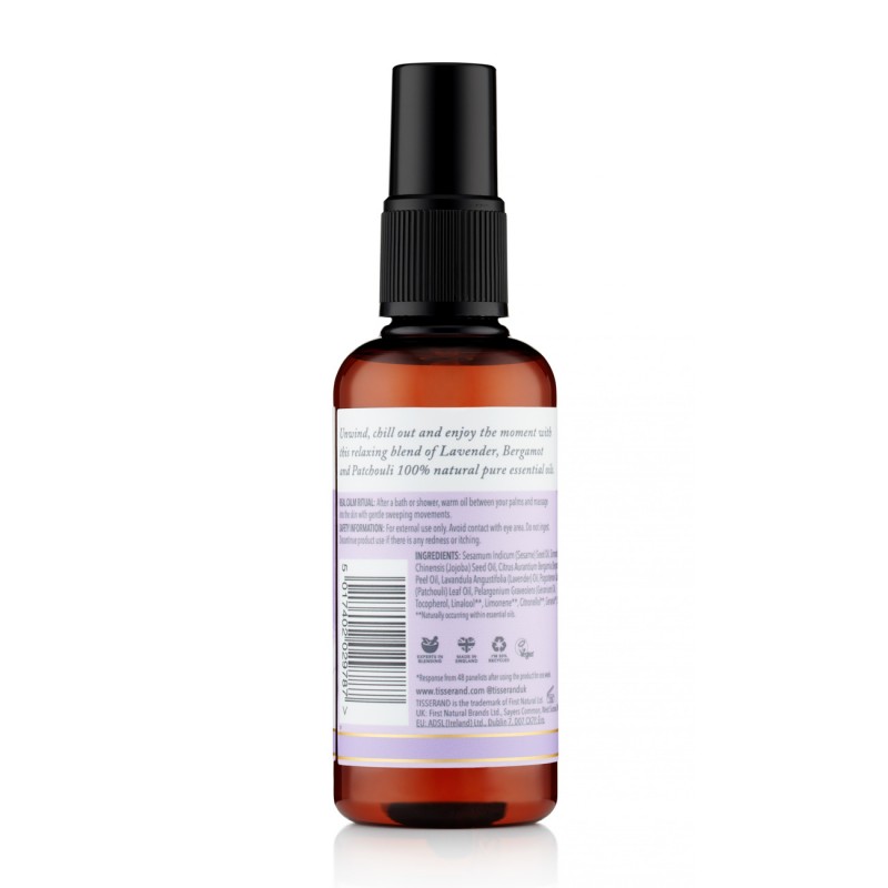 Apportez équilibre et calme à votre peau et à votre esprit avec ce mélange nourrissant d'huiles essentielles pures 100% naturelles de lavande, de bergamote et de patchouli.