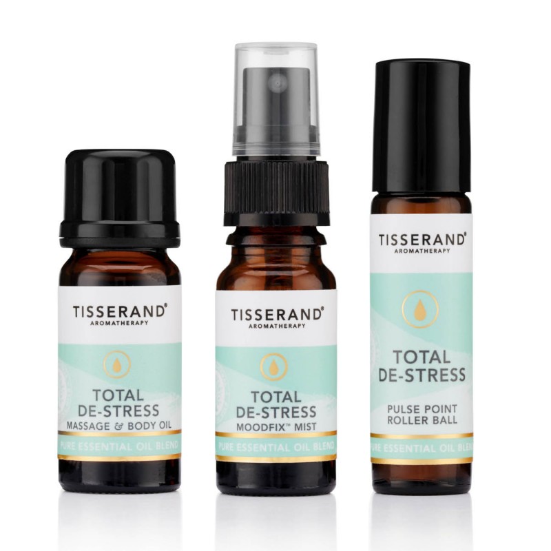 TOTAL DE-STRESS MASSAGE & BODY OIL INGREDIENTS: Sesamum Indicum (Sesame) Seed Oil, Simmondsia Chinensis (Jojoba) Seed Oil, Citrus Aurantium Dulcis (Orange) Peel Oil, Cinnamomum Camphora Linalooliferum Wood Oil, Lavandula Angustifolia (Lavender) Oil, Pelargonium Graveolens (Geranium) Oil, Mentha Citrata Herb Oil, Tocopherol, Pogostemon Cablin (Patchouli) Oil, Citrus Aurantium (Orange) Leaf Oil, Myristica Fragrans (Nutmeg) Kernel Oil, Limonene*, Linalool*, Citronellol*, Citral*, Geraniol*, Coumarin*